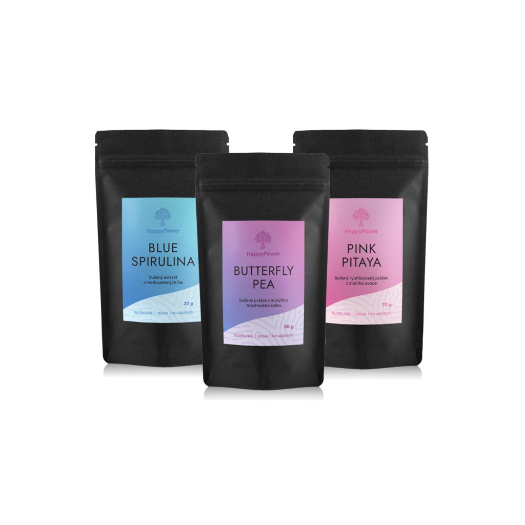 Tato sada je určená pro ty, kteří už přírodní barevné prášky znají a chtějí mít své nejoblíbenější barvy doma v praktickém větším balení. Získejte sílu modré spiruliny, energii růžové pitayi a magii motýlího květu za jednu výhodnou cenu. Vaše jídla už nikdy nebudou jako dřív!
