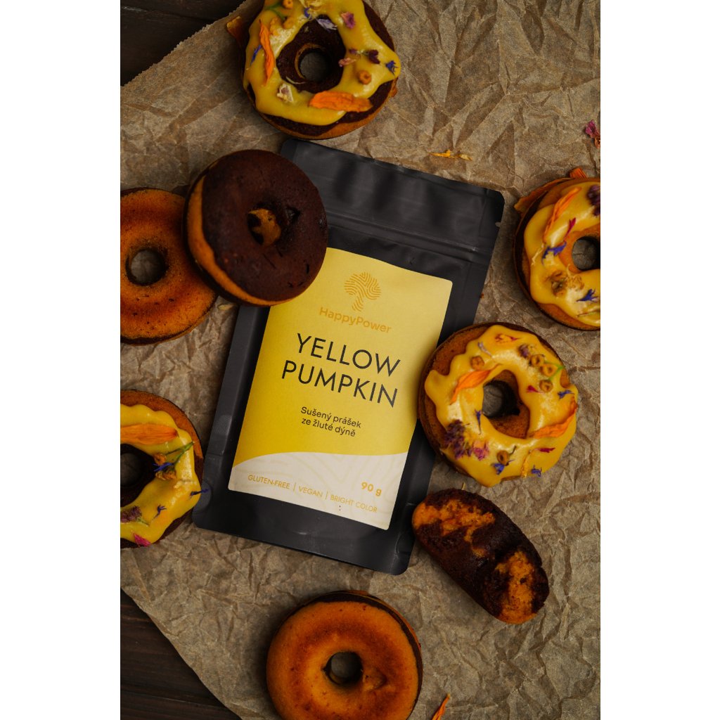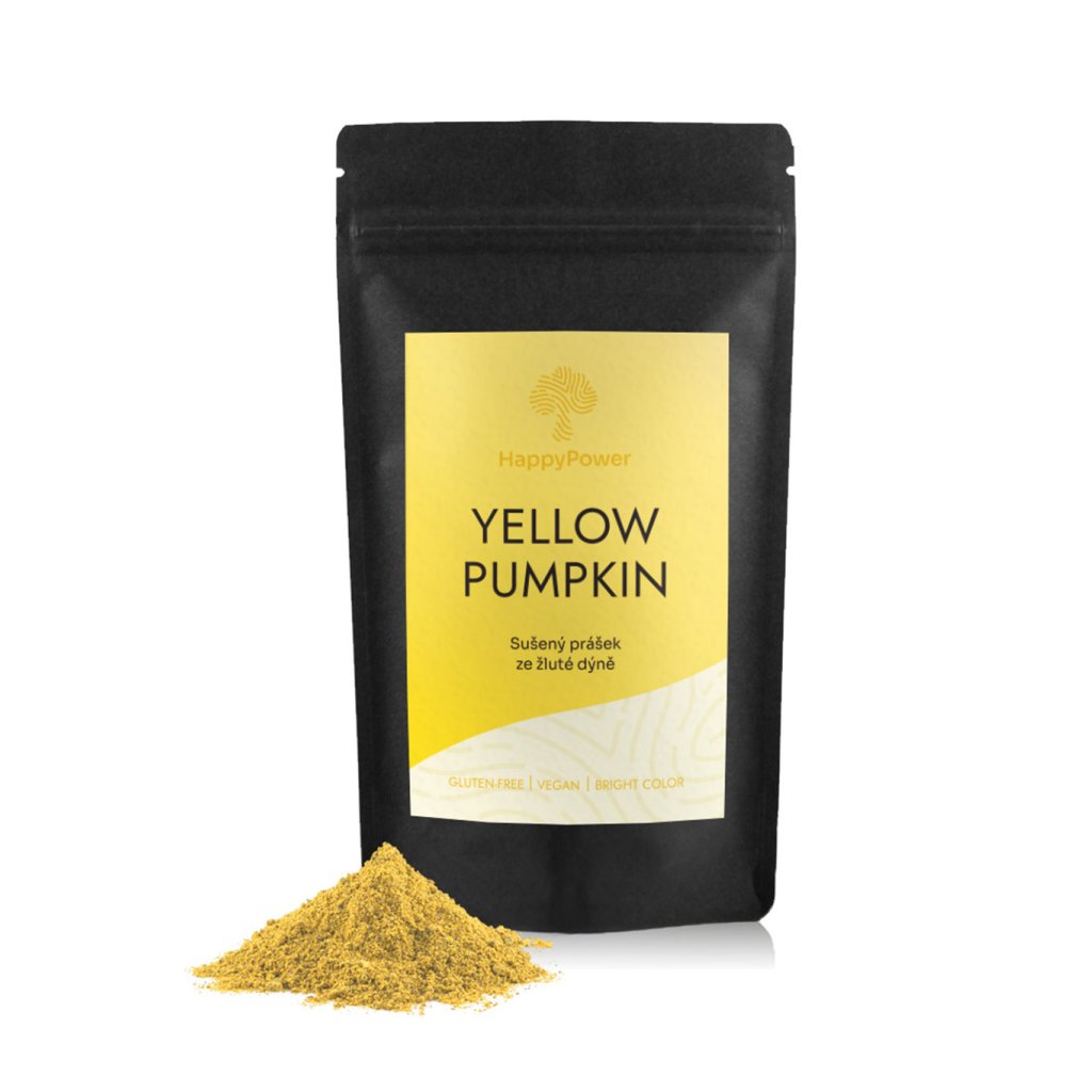 Dýňový prášek (Yellow pumpkin) je díky své příjemné nasládlé chuti a výrazné žluté barvě skvělý pomocník při tvoření lahodných dezertů a nápojů.